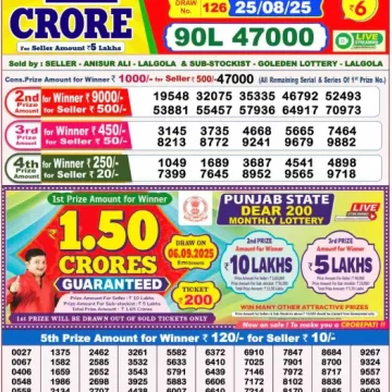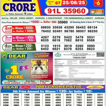 RESULT DEAR BLITZEN MONDAY WEEKLY LOTTERY 25.08.2025
