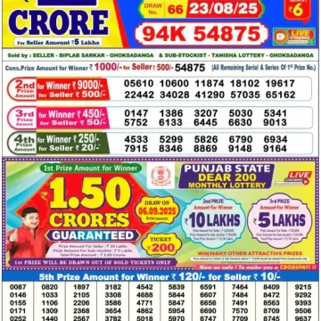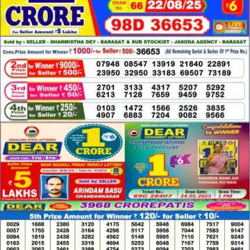 RESULT DEAR DASHER FRIDAY WEEKLY LOTTERY 22.08.2025