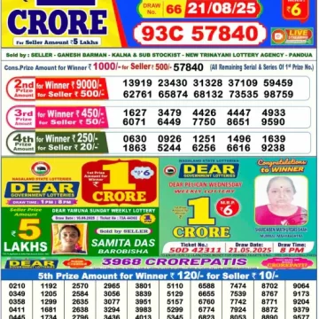 RESULT DEAR SANPIPER THURSDAY WEEKLY LOTTERY 21.08.2025