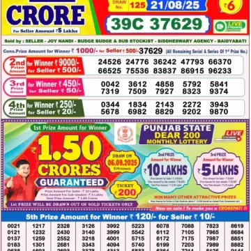 RESULT DEAR 50 CHIEF THURSDAY WEEKLY LOTTERY 21.08.2025