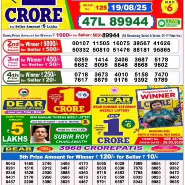 RESULT DEAR 50 MONTHLY LOTTERY DRAW DATE 19.08.2025