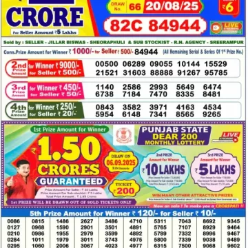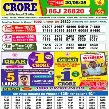 RESULT DEAR 50 BUSTER WEDNESDAY WEEKLY LOTTERY 20.08.2025