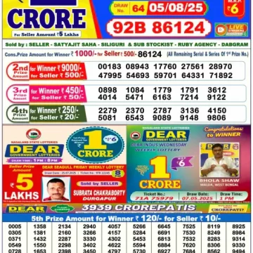 Dear Lottery Results Today – Lottery Sambad Today
