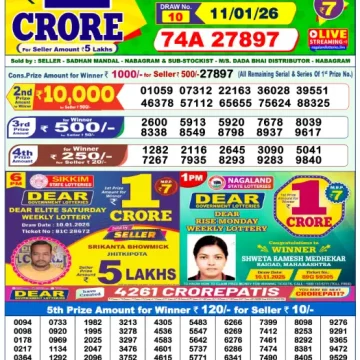 RESULT DEAR LUCKY SATURDAY WEEKLY LOTTERY 10.01.2026