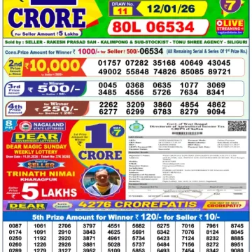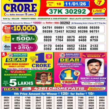 RESULT DEAR WISH SUNDAY WEEKLY LOTTERY 11.01.2026