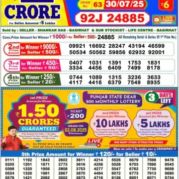 RESULT DEAR 50 BUSTER WEDNESDAY WEEKLY LOTTERY 30.07.2025