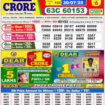 RESULT DEAR MAHANDI THURSDAY WEEKLY LOTTERY 30.07.2025