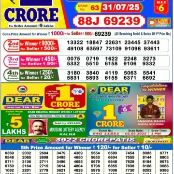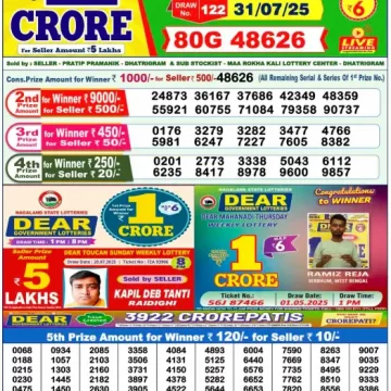 RESULT DEAR DANCER THURSDAY WEEKLY LOTTERY 31.07.2025