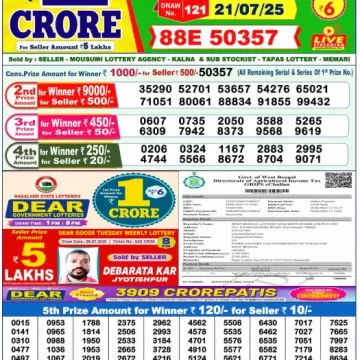RESULT DEAR SUPER GOLD MONDAY WEEKLY LOTTERY 21.07.2025