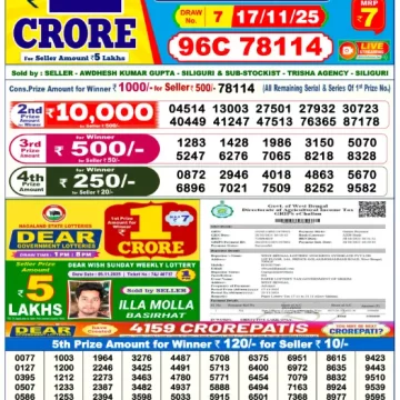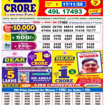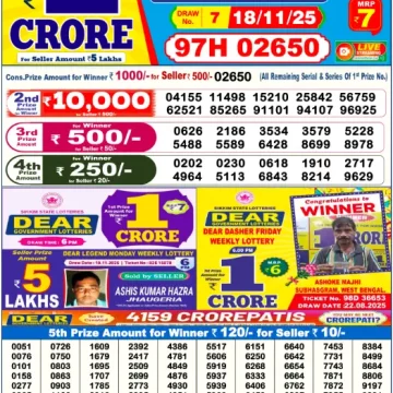 RESULT DEAR LEGEND MONDAY WEEKLY LOTTERY 17.11.2025