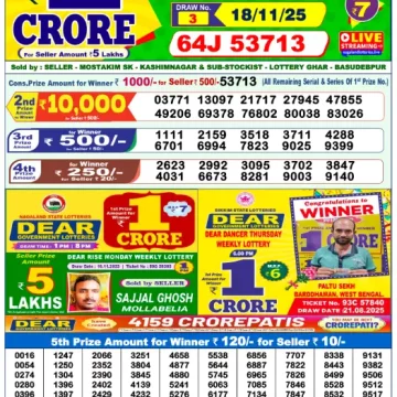 RESULT DEAR PRESTIGE TUESDAY WEEKLY LOTTERY 18.11.2025