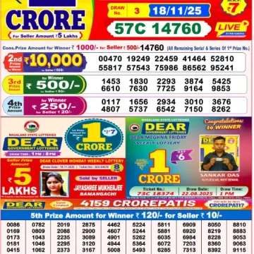 RESULT DEAR CLOVER MONDAY WEEKLY LOTTERY 17.11.2025