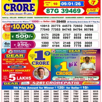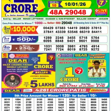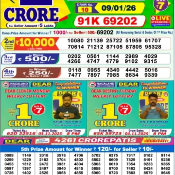 RESULT DEAR CROWN FRIDAY WEEKLY LOTTERY 09.01.2026