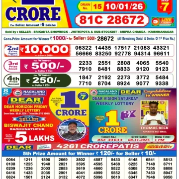 RESULT DEAR HORIZON FRIDAY WEEKLY LOTTERY 09.01.2026