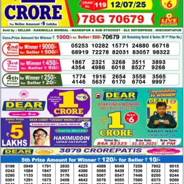 RESULT DEAR SUPER IRON SATURDAY WEEKLY LOTTERY 12.07.2025