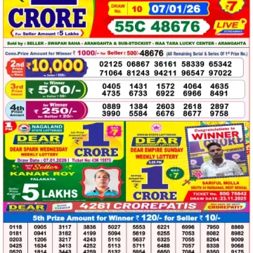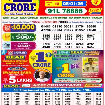 RESULT DEAR SPARK WEDNESDAY WEEKLY LOTTERY 07.01.2026
