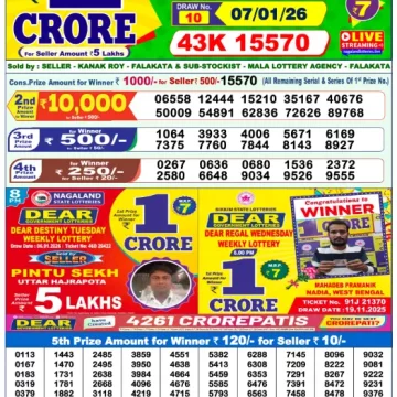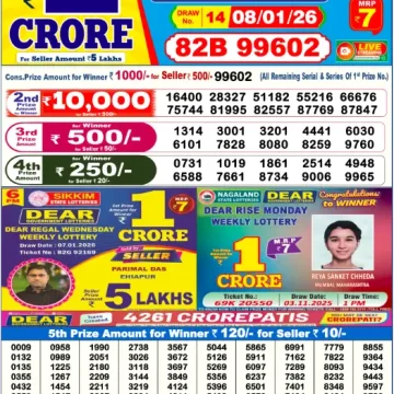 RESULT DEAR REGAL WEDNESDAY WEEKLY LOTTERY 07.01.2026