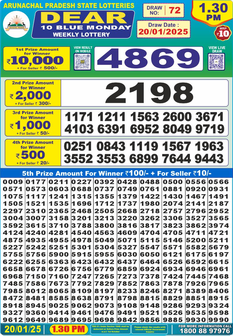 RESULT DEAR 10 BLUE MONDAY WEEKLY LOTTERY 20.01.2025 Leave a Comment on RESULT DEAR 10 BLUE MONDAY WEEKLY LOTTERY 20.01.2025 Share: XFacebookPinterestRedditVKDiggLinkedinMix