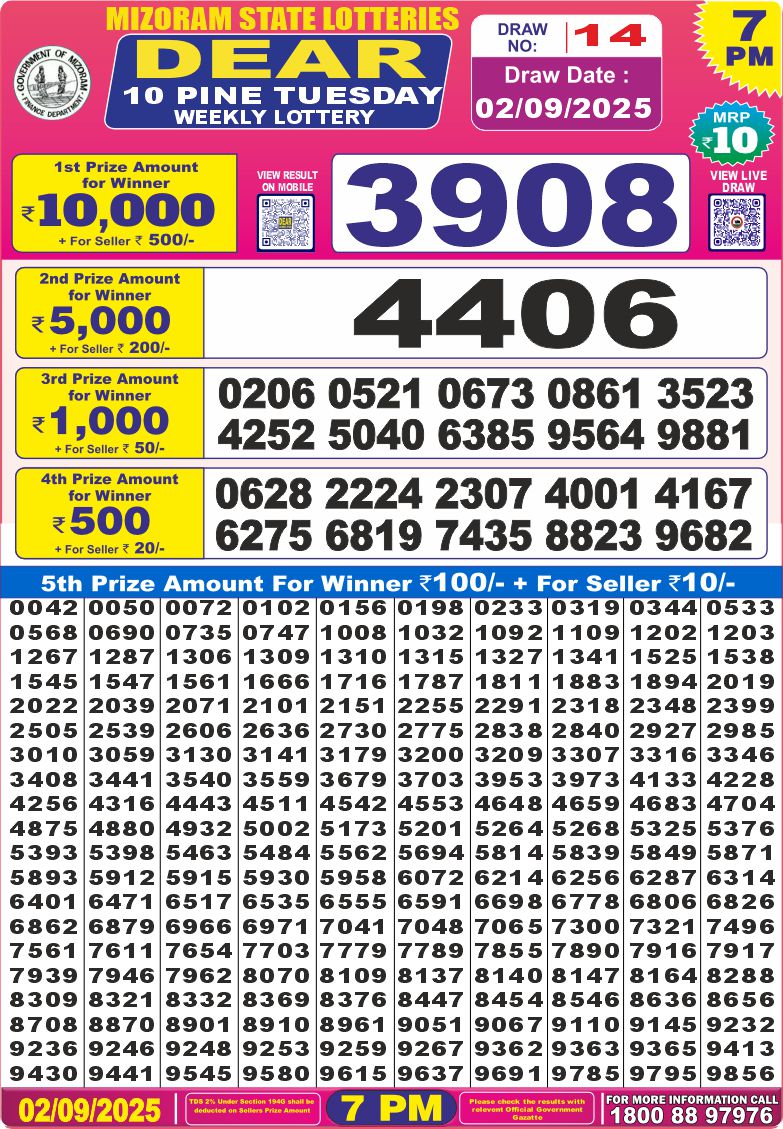 RESULT DEAR 10 PINE TUESDAY WEEKLY LOTTERY 02.09.2025 Leave a Comment on RESULT DEAR 10 PINE TUESDAY WEEKLY LOTTERY 02.09.2025 Share: XFacebookPinterestRedditVKDiggLinkedinMix