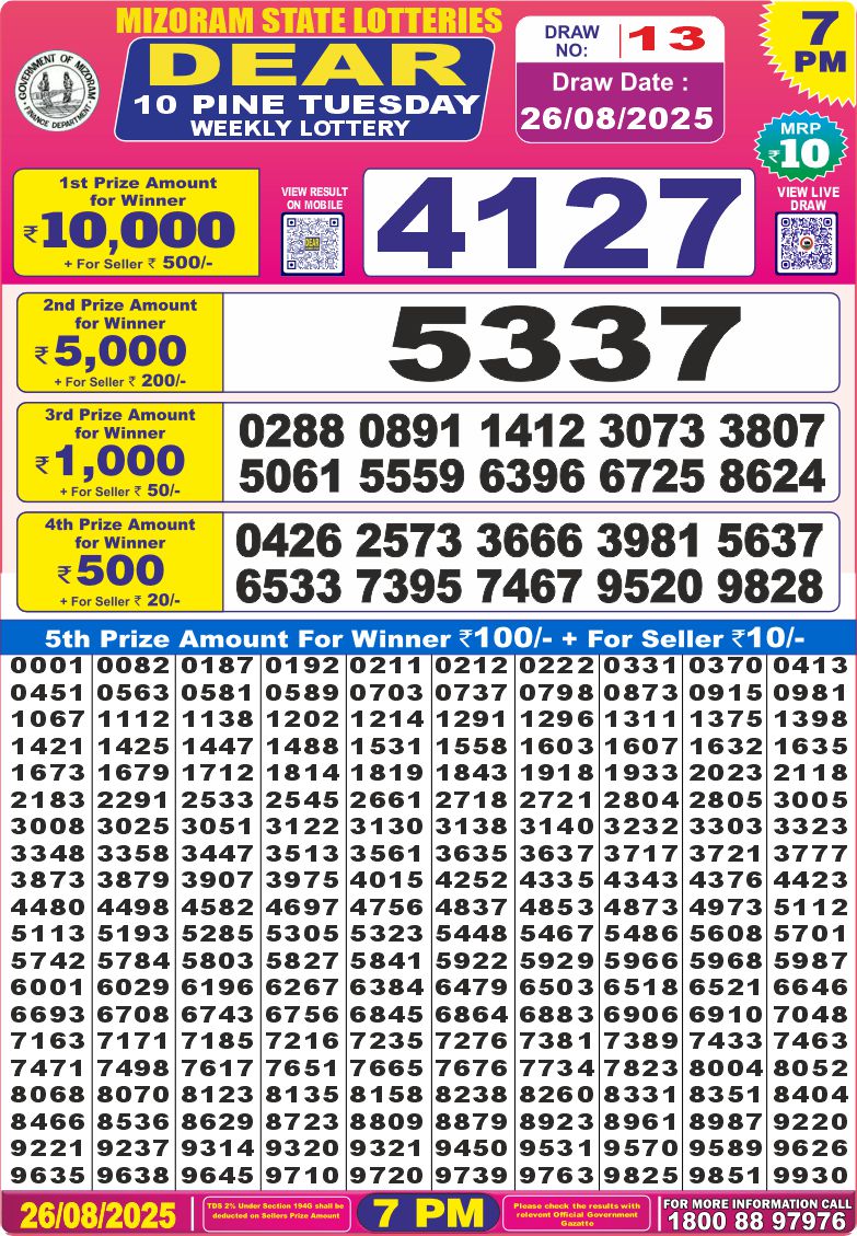 RESULT DEAR 10 PINE TUESDAY WEEKLY LOTTERY 26.08.2025 Leave a Comment on RESULT DEAR 10 PINE TUESDAY WEEKLY LOTTERY 26.08.2025 Share: XFacebookPinterestRedditVKDiggLinkedinMix