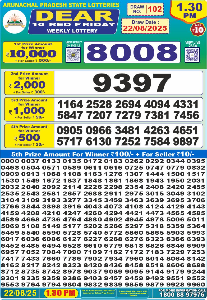 RESULT DEAR 10 RED FRIDAY WEEKLY LOTTERY 22.08.2025 Leave a Comment on RESULT DEAR 10 RED FRIDAY WEEKLY LOTTERY 22.08.2025 Share: XFacebookPinterestRedditVKDiggLinkedinMix