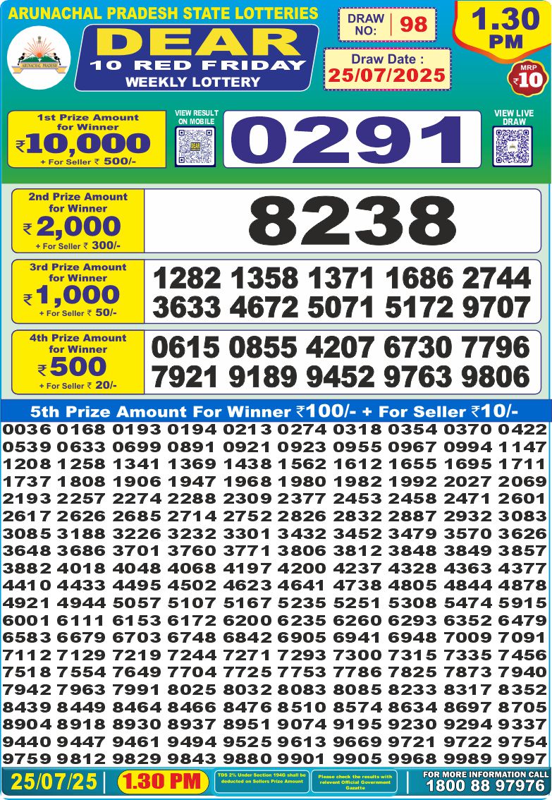 RESULT DEAR 10 RED FRIDAY WEEKLY LOTTERY 25.07.2025 Leave a Comment on RESULT DEAR 10 RED FRIDAY WEEKLY LOTTERY 25.07.2025 Share: XFacebookPinterestRedditVKDiggLinkedinMix