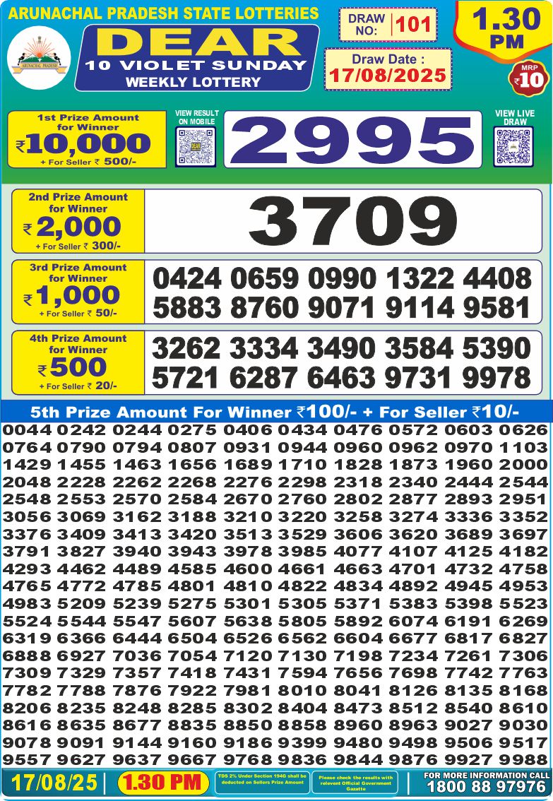 RESULT DEAR 10 VIOLET SUNDAY WEEKLY LOTTERY 17.08.2025 Leave a Comment on RESULT DEAR 10 VIOLET SUNDAY WEEKLY LOTTERY 17.08.2025 Share: XFacebookPinterestRedditVKDiggLinkedinMix