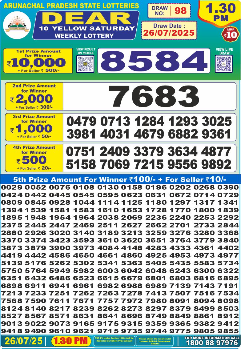 RESULT DEAR 10 YELLOW SATURDAY WEEKLY LOTTERY 26.07.2025 Leave a Comment on RESULT DEAR 10 YELLOW SATURDAY WEEKLY LOTTERY 26.07.2025 Share: XFacebookPinterestRedditVKDiggLinkedinMix