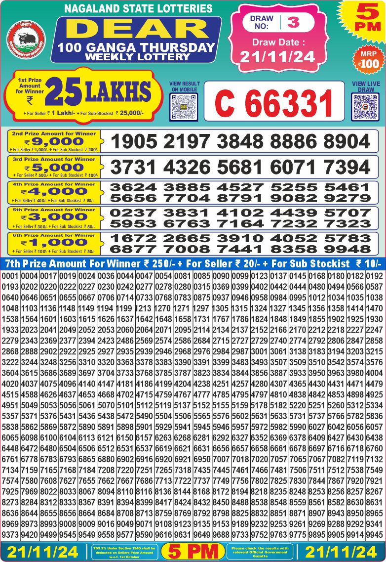 RESULT DEAR 100 GANGA THURSDAY WEEKLY LOTTERY 21.11.2024 Leave a Comment on RESULT DEAR 100 GANGA THURSDAY WEEKLY LOTTERY 21.11.2024 Share: XFacebookPinterestRedditVKDiggLinkedinMix