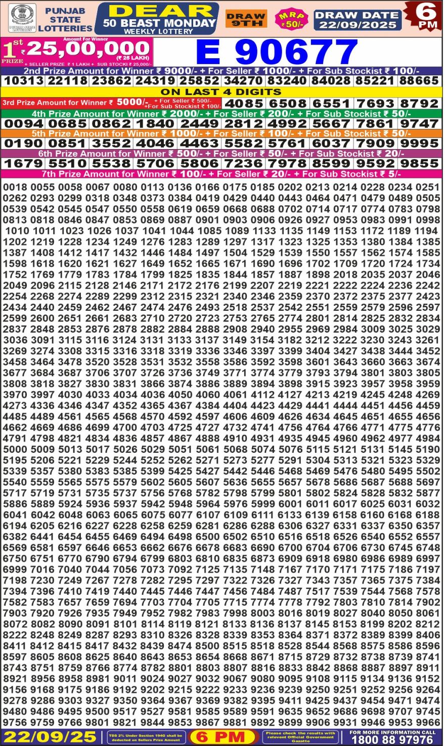 RESULT DEAR 50 BEAST MONDAY WEEKLY LOTTERY 22.09.2025 Leave a Comment on RESULT DEAR 50 BEAST MONDAY WEEKLY LOTTERY 22.09.2025 Share: XFacebookPinterestRedditVKDiggLinkedinMix