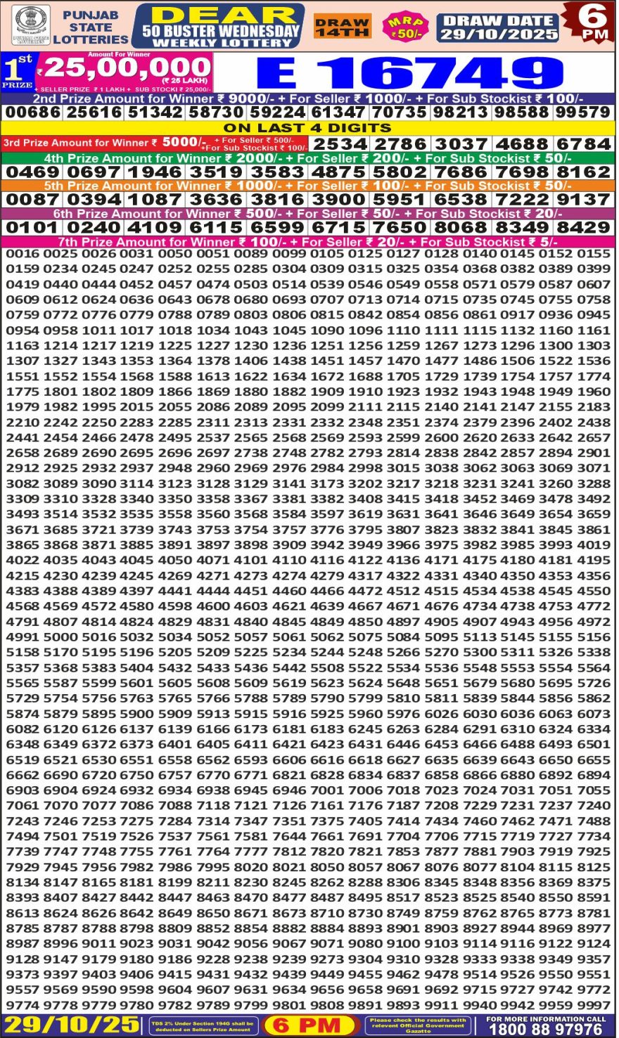 RESULT DEAR 50 BUSTER WEDNESDAY WEEKLY LOTTERY 29.10.2025 Leave a Comment on RESULT DEAR 50 BUSTER WEDNESDAY WEEKLY LOTTERY 29.10.2025 Share: XFacebookPinterestRedditVKDiggLinkedinMix