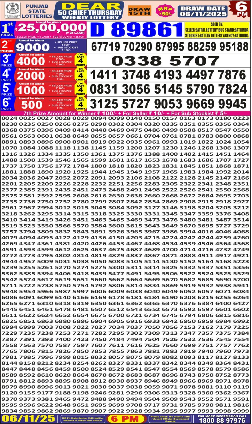 RESULT DEAR 50 CHIEF THURSDAY WEEKLY LOTTERY 06.11.2025 Leave a Comment on RESULT DEAR 50 CHIEF THURSDAY WEEKLY LOTTERY 06.11.2025 Share: XFacebookPinterestRedditVKDiggLinkedinMix