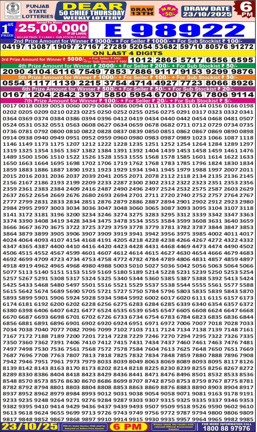 RESULT DEAR 50 CHIEF THURSDAY WEEKLY LOTTERY 23.10.2025 Leave a Comment on RESULT DEAR 50 CHIEF THURSDAY WEEKLY LOTTERY 23.10.2025 Share: XFacebookPinterestRedditVKDiggLinkedinMix