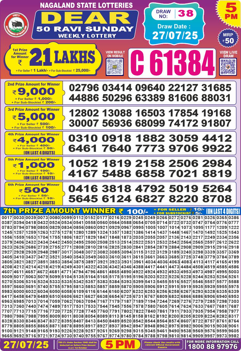 RESULT DEAR 50 RAVI SUNDAY WEEKLY LOTTERY 27.07.2025 Leave a Comment on RESULT DEAR 50 RAVI SUNDAY WEEKLY LOTTERY 27.07.2025 Share: XFacebookPinterestRedditVKDiggLinkedinMix