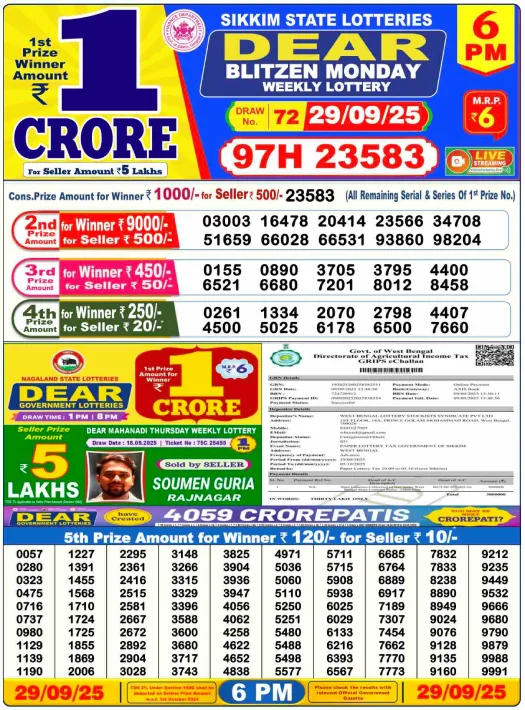 RESULT DEAR BLITZEN MONDAY WEEKLY LOTTERY 29.09.2025 Leave a Comment on RESULT DEAR BLITZEN MONDAY WEEKLY LOTTERY 29.09.2025 Share: XFacebookPinterestRedditVKDiggLinkedinMix
