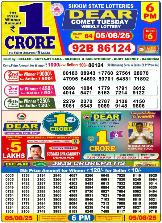 RESULT DEAR COMET TUESDAY WEEKLY LOTTERY 05.08.2025 Leave a Comment on RESULT DEAR COMET TUESDAY WEEKLY LOTTERY 05.08.2025 Share: XFacebookPinterestRedditVKDiggLinkedinMix