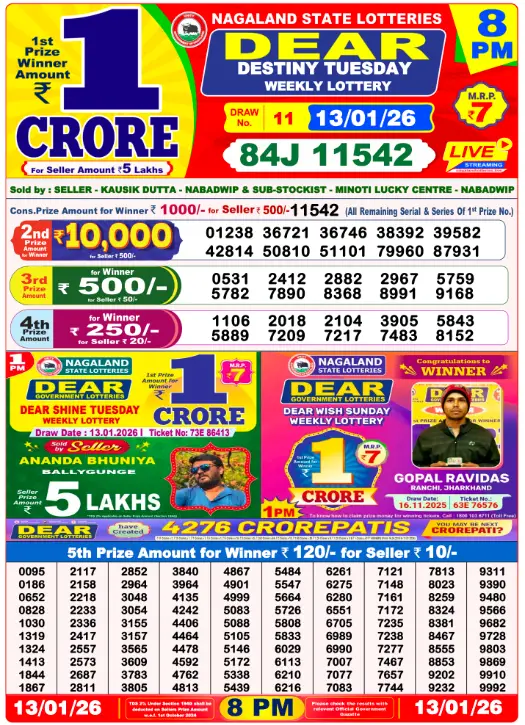 RESULT DEAR DESTINY TUESDAY WEEKLY LOTTERY 13.01.2026 Leave a Comment on RESULT DEAR DESTINY TUESDAY WEEKLY LOTTERY 13.01.2026 Share: XFacebookPinterestRedditVKDiggLinkedinMix