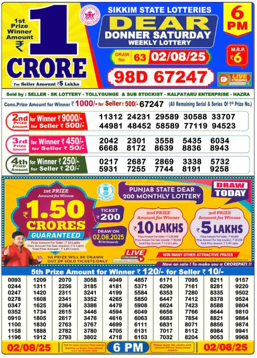 RESULT DEAR DONNER SATURDAY WEEKLY LOTTERY 02.08.2025 Leave a Comment on RESULT DEAR DONNER SATURDAY WEEKLY LOTTERY 02.08.2025 Share: XFacebookPinterestRedditVKDiggLinkedinMix