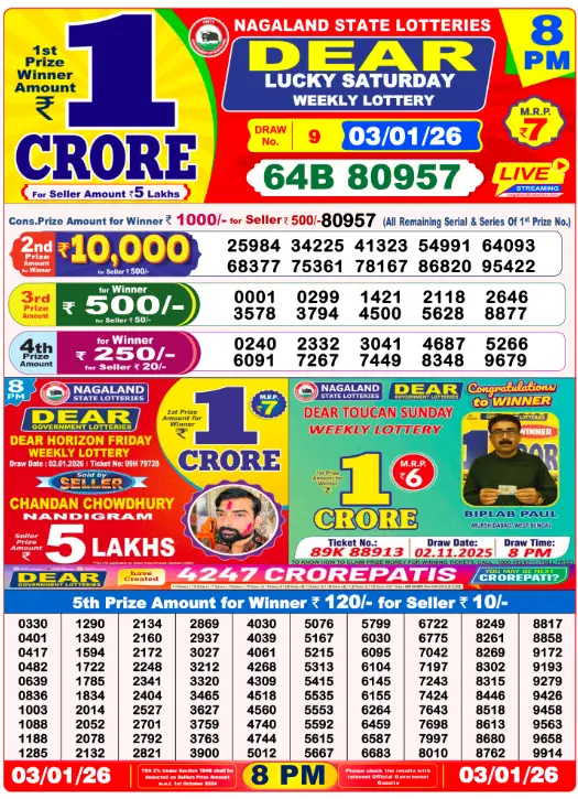 RESULT DEAR LUCKY SATURDAY WEEKLY LOTTERY 03.01.2026 Leave a Comment on RESULT DEAR LUCKY SATURDAY WEEKLY LOTTERY 03.01.2026 Share: XFacebookPinterestRedditVKDiggLinkedinMix