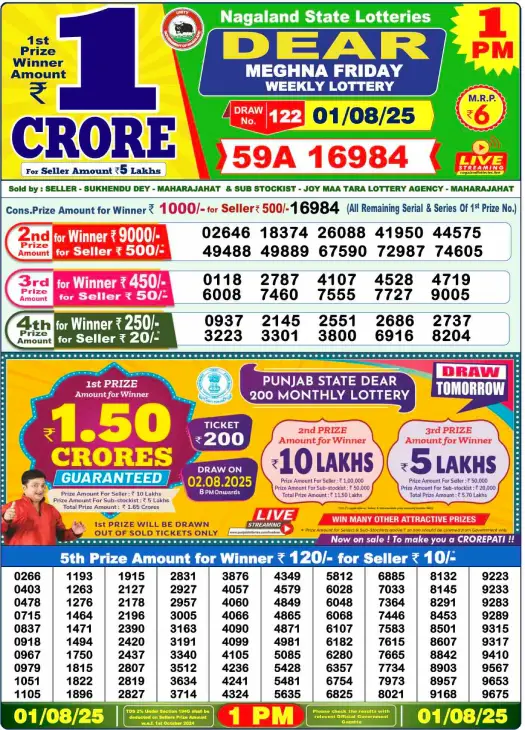 RESULT DEAR MEGHNA FRIDAY WEEKLY LOTTERY 01.08.2025 Leave a Comment on RESULT DEAR MEGHNA FRIDAY WEEKLY LOTTERY 01.08.2025 Share: XFacebookPinterestRedditVKDiggLinkedinMix