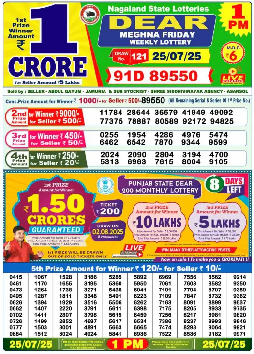 RESULT DEAR MEGHNA FRIDAY WEEKLY LOTTERY 25.07.2025 Leave a Comment on RESULT DEAR MEGHNA FRIDAY WEEKLY LOTTERY 25.07.2025 Share: XFacebookPinterestRedditVKDiggLinkedinMix