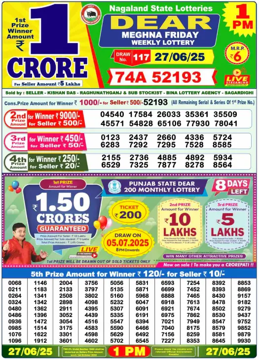 RESULT DEAR MEGHNA FRIDAY WEEKLY LOTTERY 27.06.2025 Leave a Comment on RESULT DEAR MEGHNA FRIDAY WEEKLY LOTTERY 27.06.2025 Share: XFacebookPinterestRedditVKDiggLinkedinMix