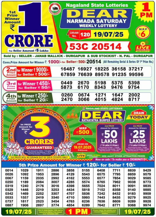 RESULT DEAR NARMADA SATURDAY WEEKLY LOTTERY 19.07.2025 Leave a Comment on RESULT DEAR NARMADA SATURDAY WEEKLY LOTTERY 19.07.2025 Share: XFacebookPinterestRedditVKDiggLinkedinMix