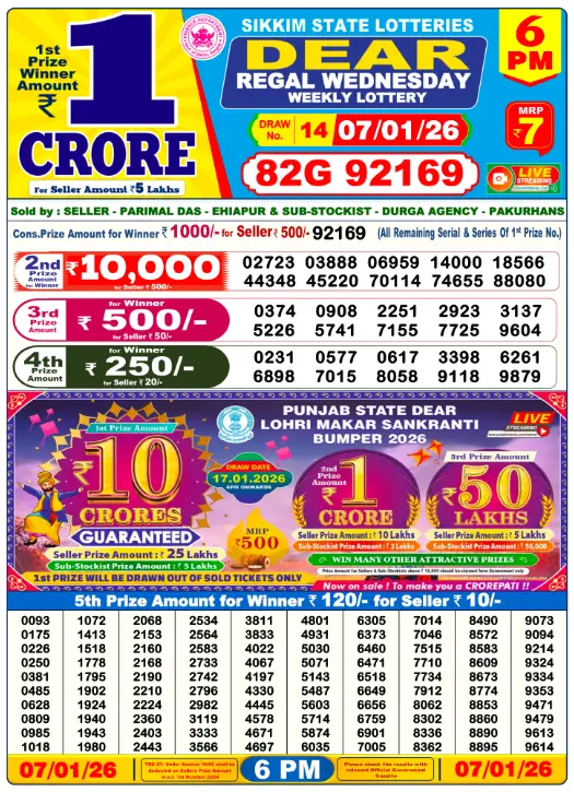 RESULT DEAR REGAL WEDNESDAY WEEKLY LOTTERY 07.01.2026 Leave a Comment on RESULT DEAR REGAL WEDNESDAY WEEKLY LOTTERY 07.01.2026 Share: XFacebookPinterestRedditVKDiggLinkedinMix