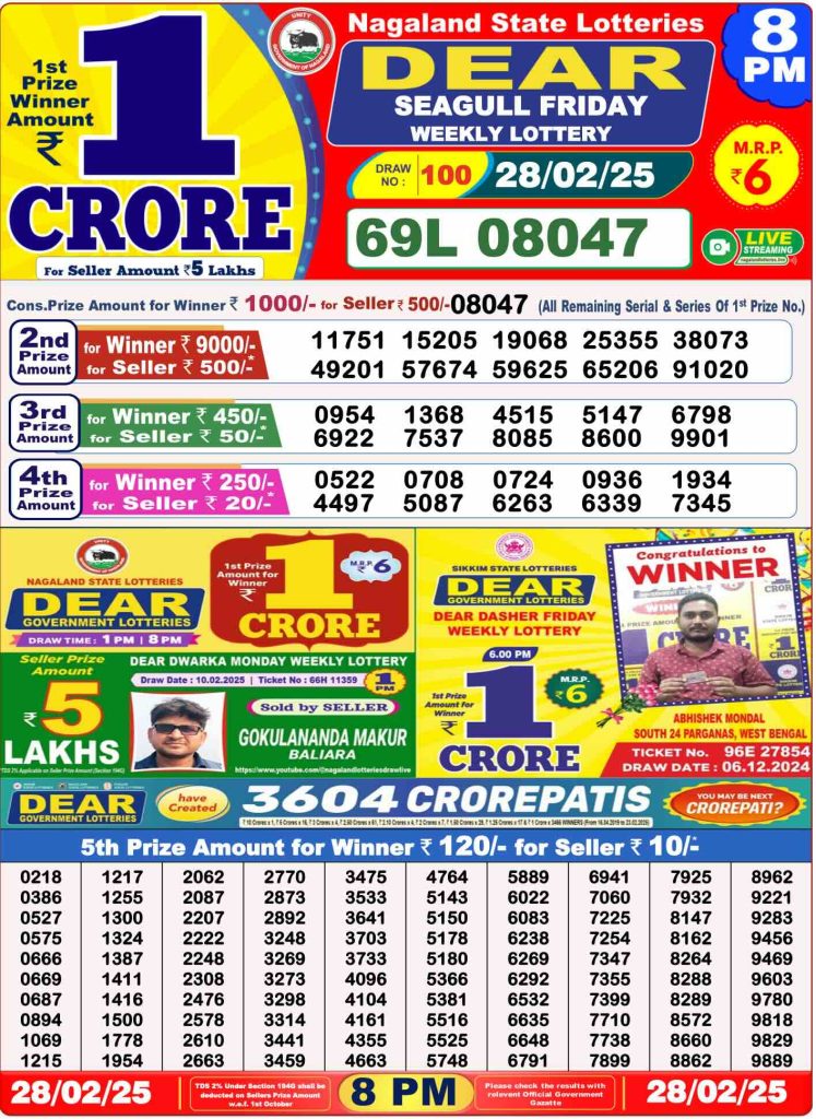 RESULT DEAR SEAGULL FRIDAY WEEKLY LOTTERY 28.02.2025 Leave a Comment on RESULT DEAR SEAGULL FRIDAY WEEKLY LOTTERY 28.02.2025 Share: XFacebookPinterestRedditVKDiggLinkedinMix