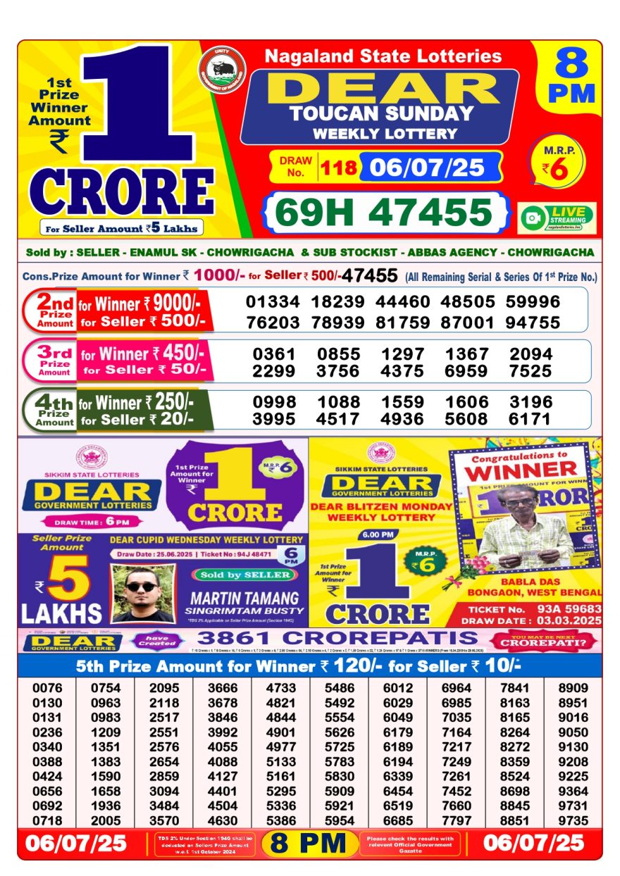 RESULT DEAR TOUCAN SUNDAY WEEKLY LOTTERY 06.07.2025 Leave a Comment on RESULT DEAR TOUCAN SUNDAY WEEKLY LOTTERY 06.07.2025 Share: XFacebookPinterestRedditVKDiggLinkedinMix