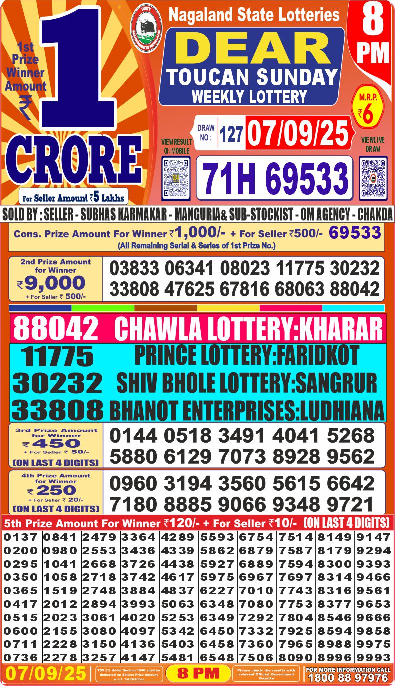 RESULT DEAR TOUCAN SUNDAY WEEKLY LOTTERY 07.09.2025 Leave a Comment on RESULT DEAR TOUCAN SUNDAY WEEKLY LOTTERY 07.09.2025 Share: XFacebookPinterestRedditVKDiggLinkedinMix