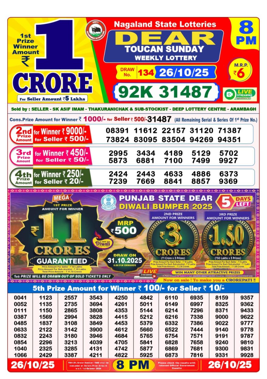RESULT DEAR TOUCAN SUNDAY WEEKLY LOTTERY 26.10.2025 Leave a Comment on RESULT DEAR TOUCAN SUNDAY WEEKLY LOTTERY 26.10.2025 Share: XFacebookPinterestRedditVKDiggLinkedinMix