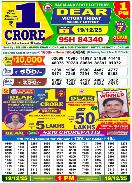 RESULT DEAR VICTORY FRIDAY WEEKLY LOTTERY 19.12.2025 Leave a Comment on RESULT DEAR VICTORY FRIDAY WEEKLY LOTTERY 19.12.2025 Share: XFacebookPinterestRedditVKDiggLinkedinMix