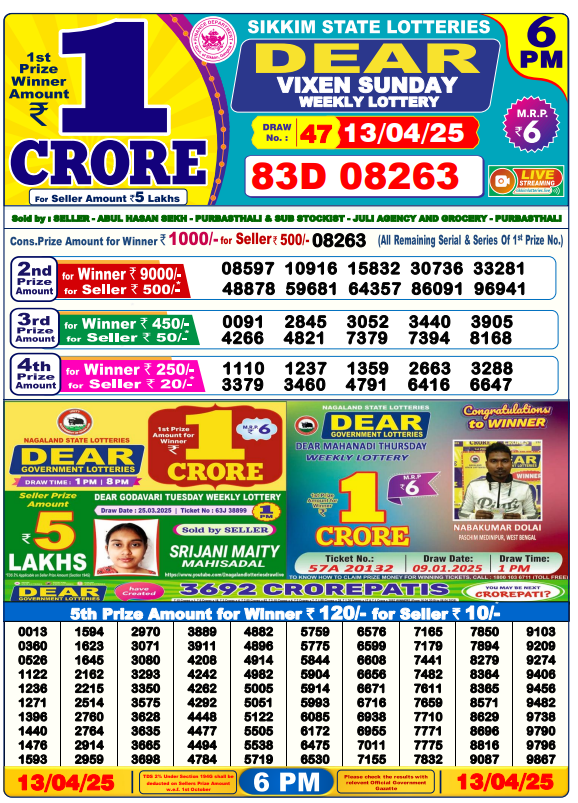 RESULT DEAR VIXEN SUNDAY WEEKLY LOTTERY 13.04.2025 Leave a Comment on RESULT DEAR VIXEN SUNDAY WEEKLY LOTTERY 13.04.2025 Share: XFacebookPinterestRedditVKDiggLinkedinMix